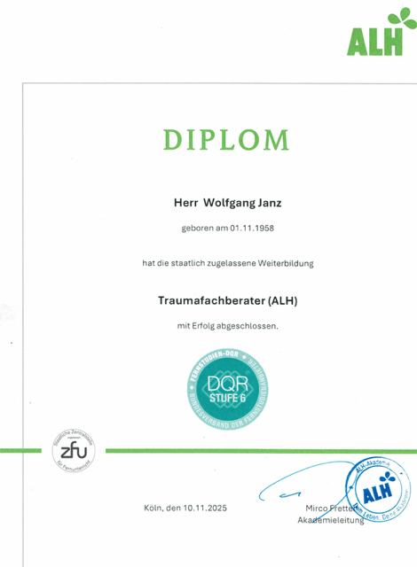 Alle Bestandteile und den Ablauf werden wir gemeinsam festlegen und ggf. auch anpassen, wenn es die Situation erfordert. Bei der Traumaberatung geht es ausschließlich um eine nicht-konfrontative Wissensvermittlung und Stabilisierung.
